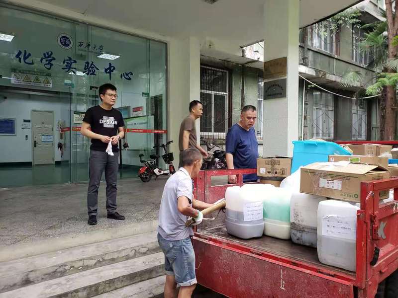 2021年7月9日我处牵头对化学、生物两个实验中心的暂存危险废物进行集中转移,本次转移的危险废物包括实验室废液和化学品空瓶。通过本次危险废物集中转移,减少了实验室的危化品安全隐患,为师生的科研学习提供了有力保障。